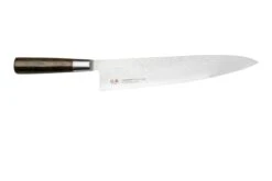 La gamme Böker Damast Olive respire l’élégance, avec un look multiculturel. Les manches sont en bois d’olivier splendide, originaire de Méditerranée. Ce bois a une loupe magnifique et l’odeur toute particulière des olives. Il se marie parfaitement à la lame en acier damassé avec noyau en acier VG10 japonais. La lame est tranchante comme un rasoir, typiquement japonais. Les couteaux de cette gamme sont incroyablement légers. Cela rend une utilisation prolongée plus agréable. La forme de la lame et l’absence de mitre sont des éléments typiquement japonais. L’association de ce style et de ces matériaux magnifiques avec le savoir-faire Allemand de Solingen a pour résultat ces couteaux stylés et légers.