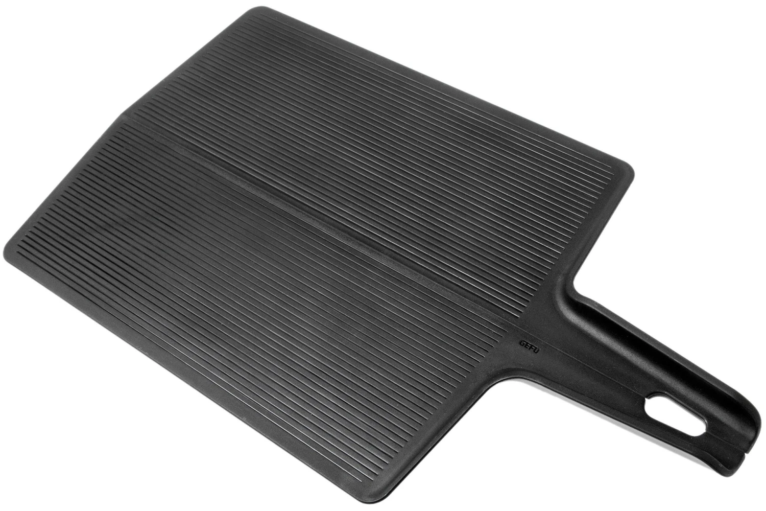 Cette planche à découper pliable GEFU LAVOS est la réponse à un problème connu de la plupart des cuisiniers, professionnels et amateurs. À savoir le déplacement des ingrédients de la planche à découper à la poêle. La planche est toujours trop grande ou la casserole trop petite… Grâce à cette planche à découper ingénieuse, il suffit de serrer la poignée pour que la planche se plie en son milieu. De quoi verser les ingrédients dans la casserole sans en mettre partout dans la cuisine.