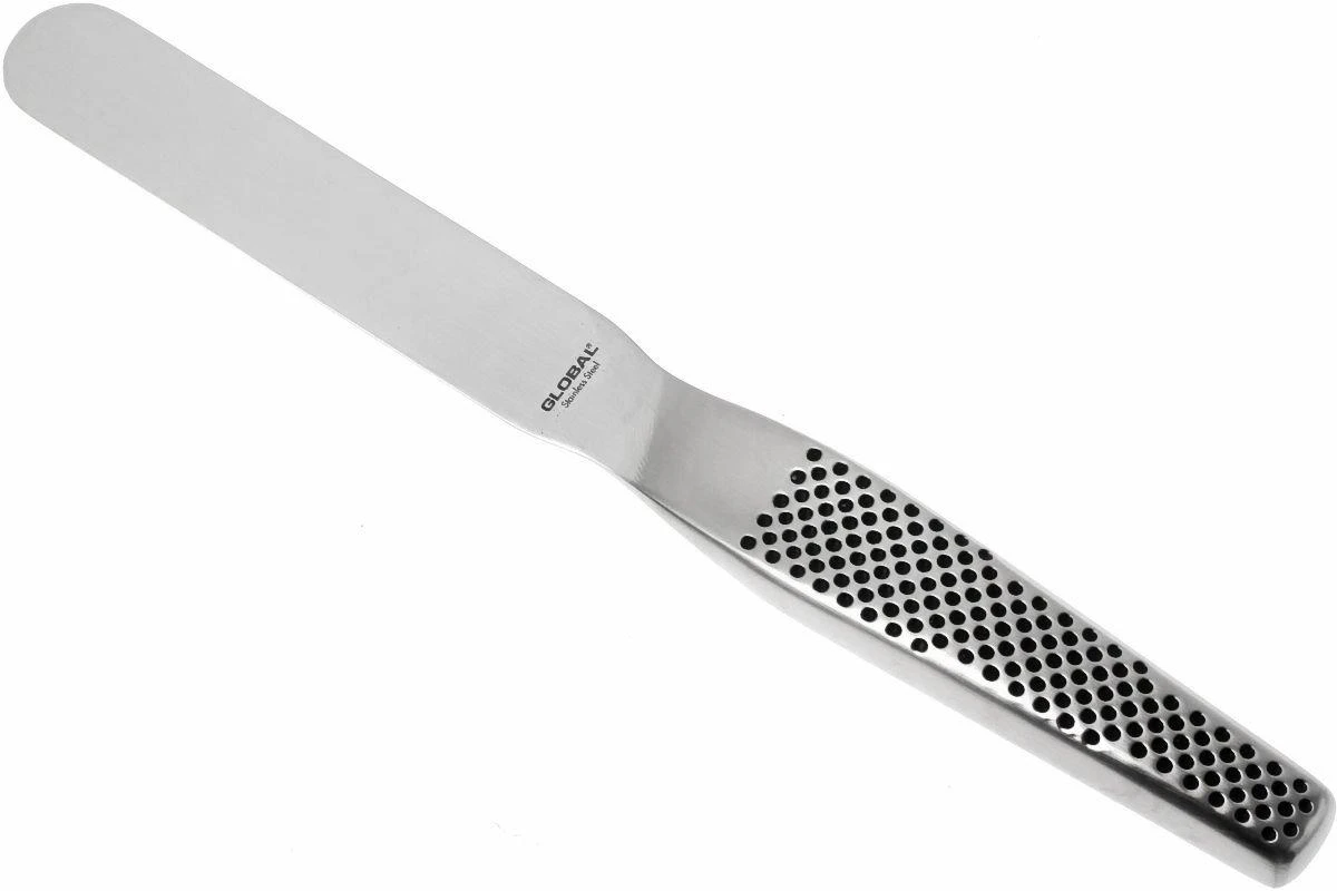 Un incontournable dans chaque cuisine : une bonne spatule. Ce couteau est idéal pour lisser les garnitures et crèmes sur les gâteaux, les démouler ou encore retourner les crêpes. Cette spatule Global fait très bien son boulot. Comme elle est très fine, elle glisse facilement le sous les aliments. Le manche alvéolé est en acier inoxydable, pour une préhension optimale lors de l’utilisation.