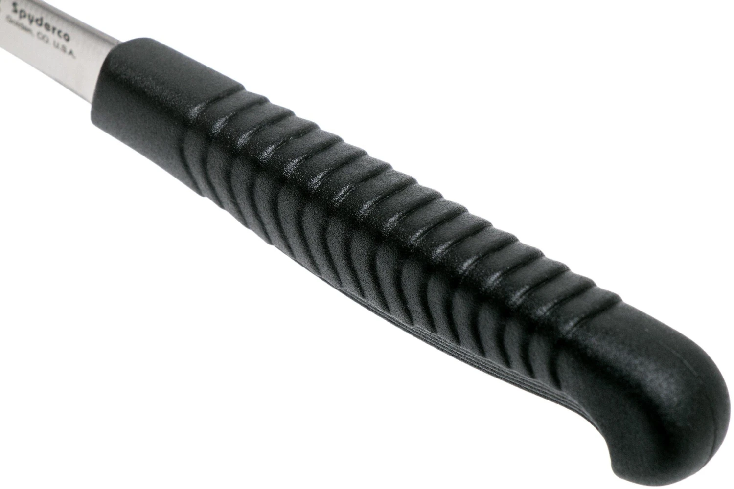 Ce petit couteau bec d’oiseau K09PBK de Spyderco est parfait pour l’épluchage et les petites découpes. La lame finement aiguisée rend ce couteau parfait pour toutes les tâches de précision telles que couper des tranches très minces ou éplucher des légumes. Sa forme arrondie vous facilite la tâche avec les ingrédients de forme ronde.