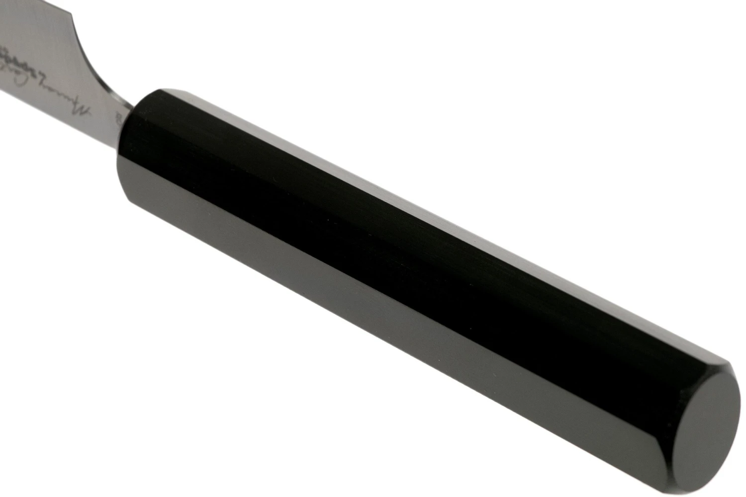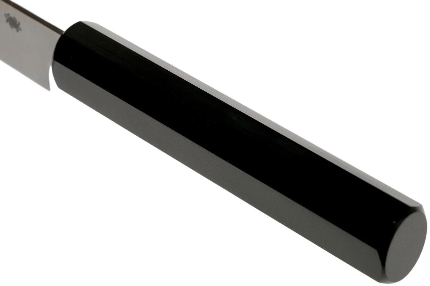 Le Spyderco Wakiita Petty de la collection Murray Carter est le plus petit couteau de cuisine de cette gamme. Le Petty est donc un petit couteau que l’on pourrait comparer aux couteaux à éplucher occidentaux. Parfait pour éplucher et couper les fruits et légume ou encore couper de la garniture pour décorer les plats.
