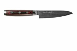 Le couteau universel Xin Cutlery XinCare noir et rouge est un couteau de cuisine japonais élégant. Ce couteau universel a une lame de 18 cm de long et ressemble presque à un petit couteau de chef. Pourtant c’est bien un couteau universel. Sa lame bien tranchante et sa pointe acérée en font un couteau idéal pour les petites coupes précises, pour les gousses d’ail ou les herbes, mais également pour couper de petits morceaux de légumes et de viande.
