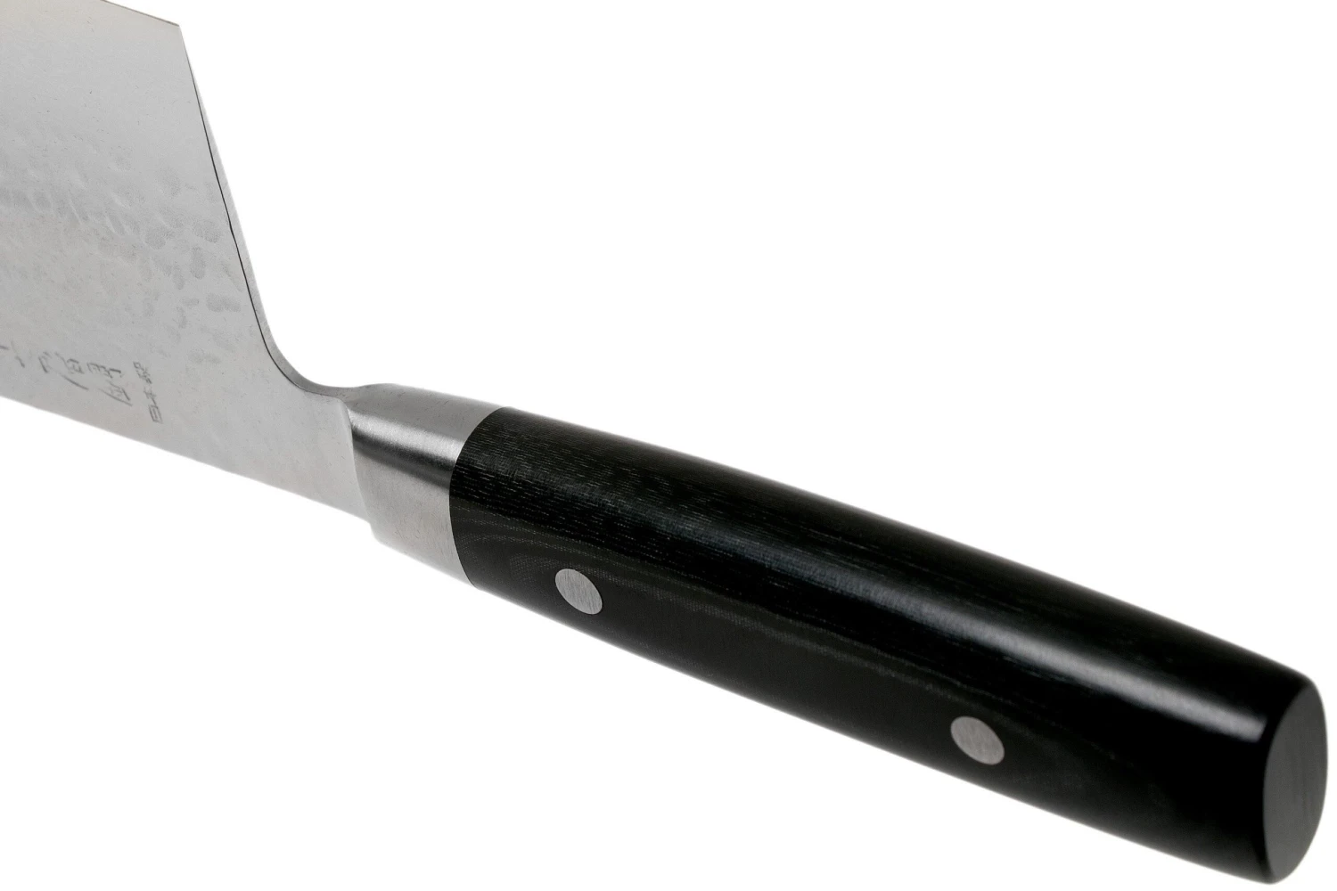 Le couteau de chef chinois Yaxell Zen est un élégant couteau à légumes japonais, mais dont la forme rappelle fortement un couteau de chef chinois. Ce type de couteau est souvent utilisé dans la cuisine chinoise car la hauteur de la lame permet de facilement utiliser les doigts comme guide. Pour un travail sûr, rapide et pratique. On utilise ce couteau de chef chinois pour couper les légumes et herbes aromatiques très finement mais aussi pour écraser les gousses d’ail par exemple. La lame haute permet de transvaser les aliments de la planche à découper à la poêle en toute facilité.